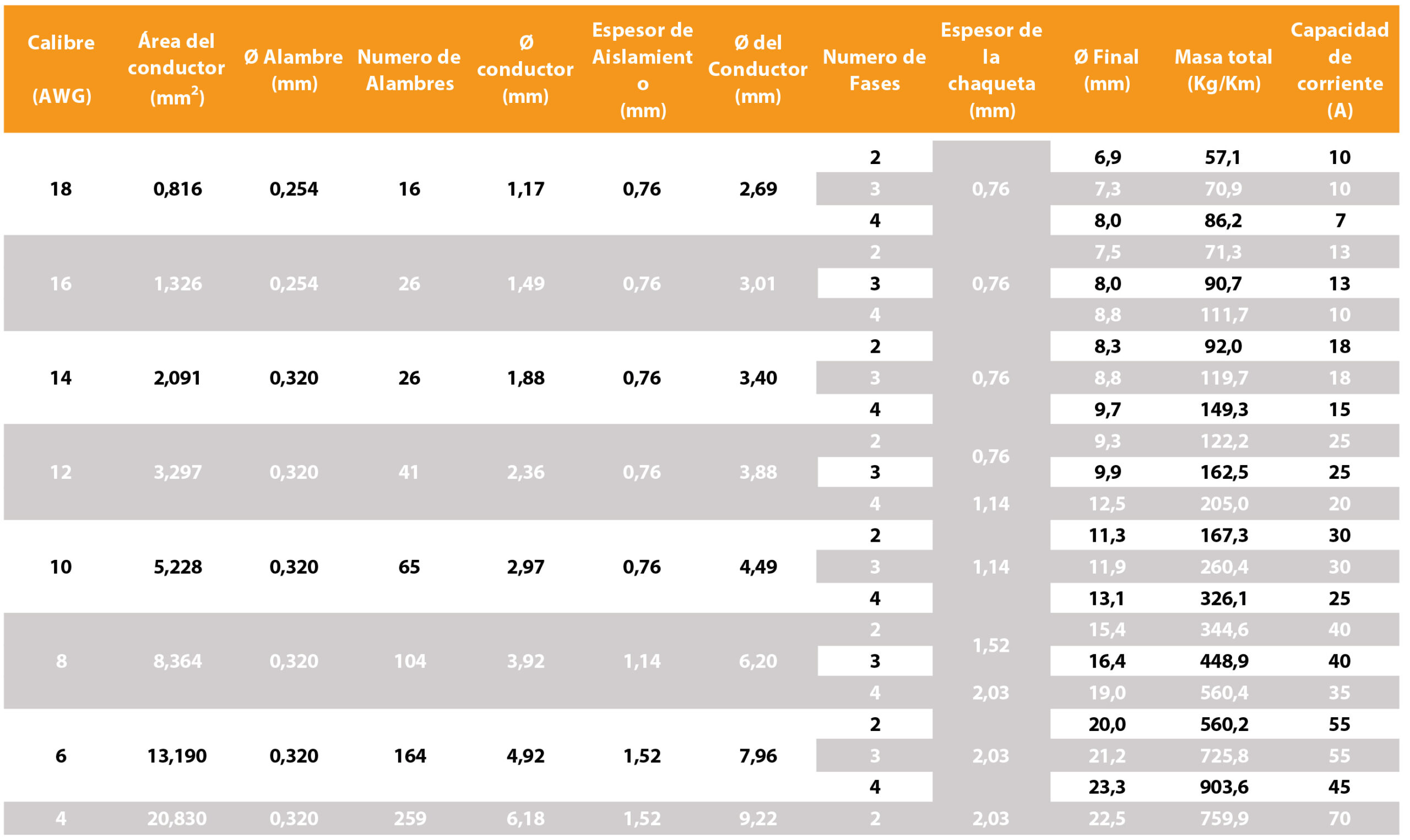 Cables flexibles multiconductor compuesto de dos, tres, cuatro o más conductores de cobre blando, con aislamiento individual y cubierta en compuesto libre de halógenos HFFR.